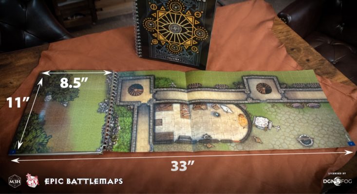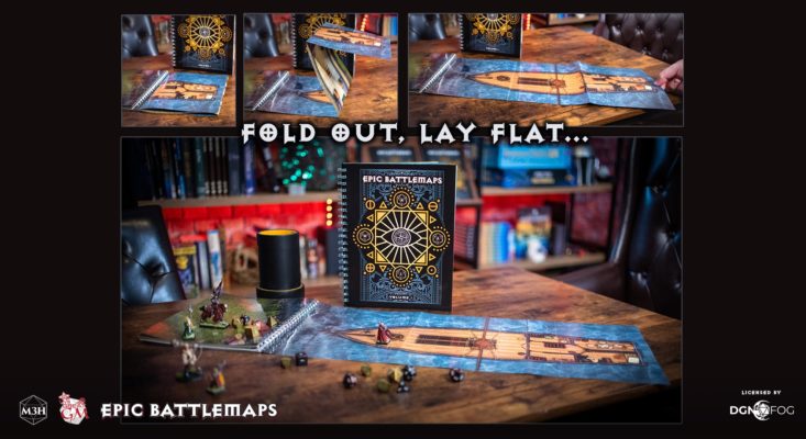 Each of the beautifully detailed maps contained within this epic volume are specially designed to fold flat, to be to scale with standard mini’s, and are coated in a special laminate allowing you to draw on them with dry erase markers.
