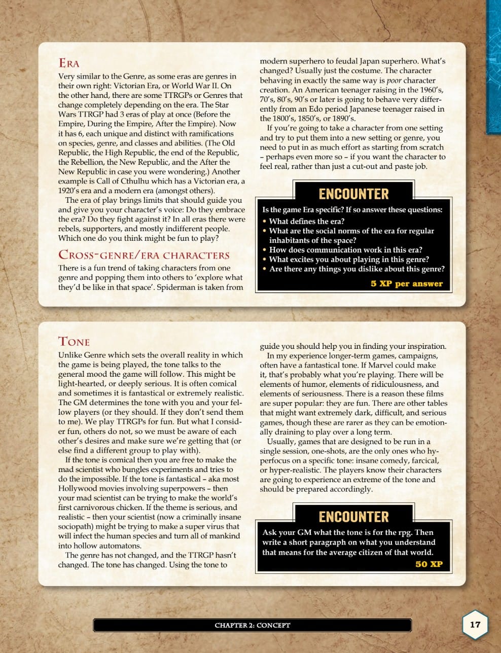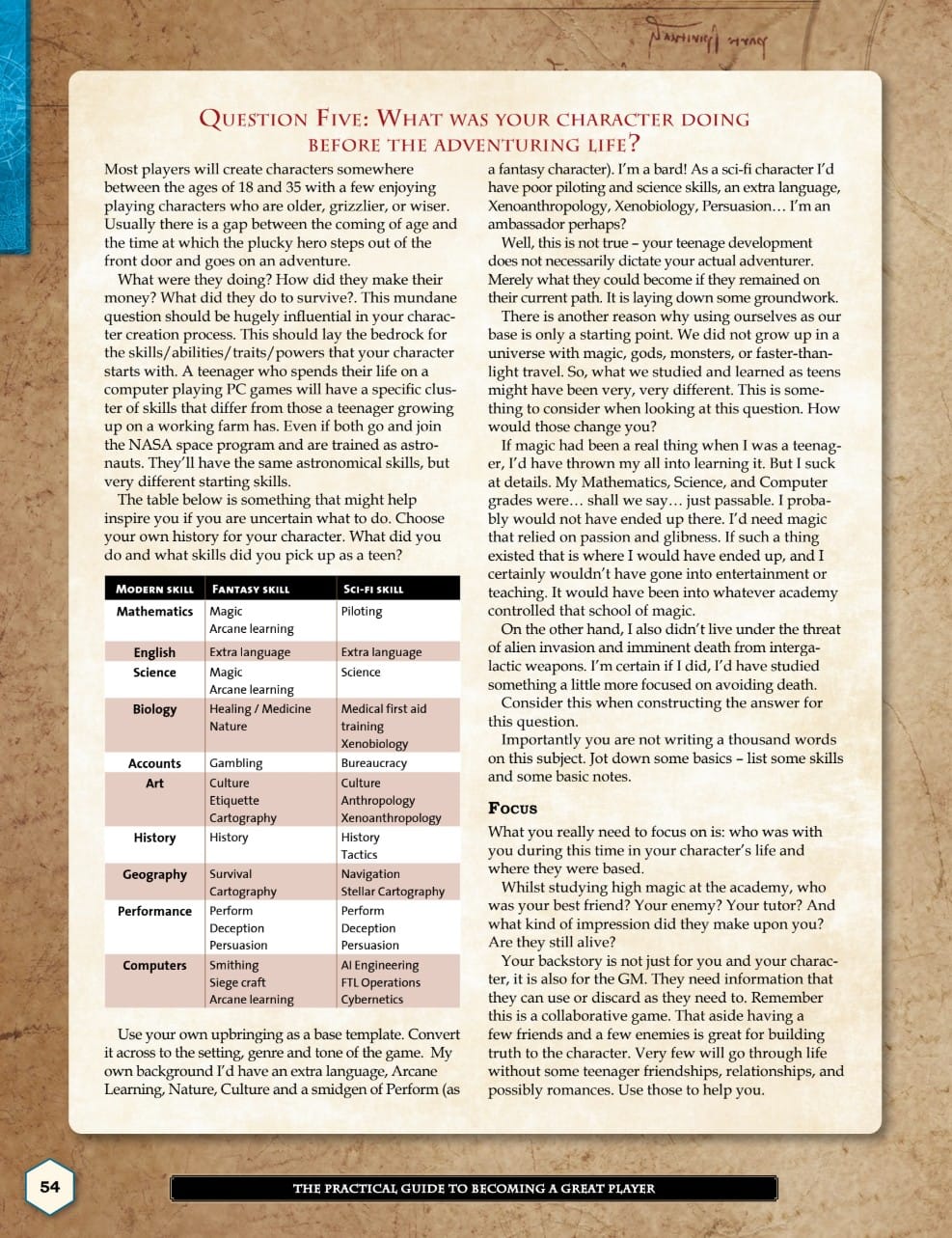 Each section of the book contains a working exercise for you to complete, and once you’ve completed all of them you have a fully formed character ready to go.